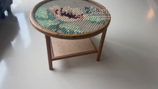 Coffee Table with Replacable Art - The Beauty of Finches (32 inch diameter)