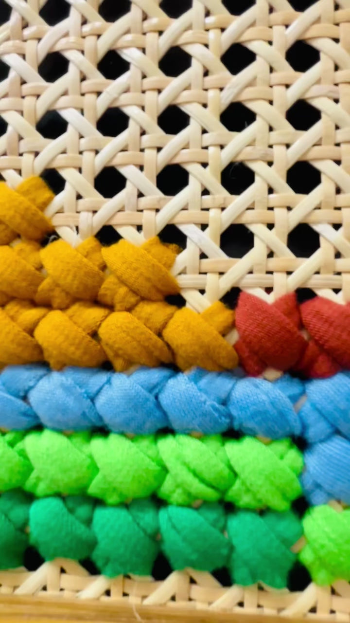 - Art: mixed textile art hand stitched on cane webbing