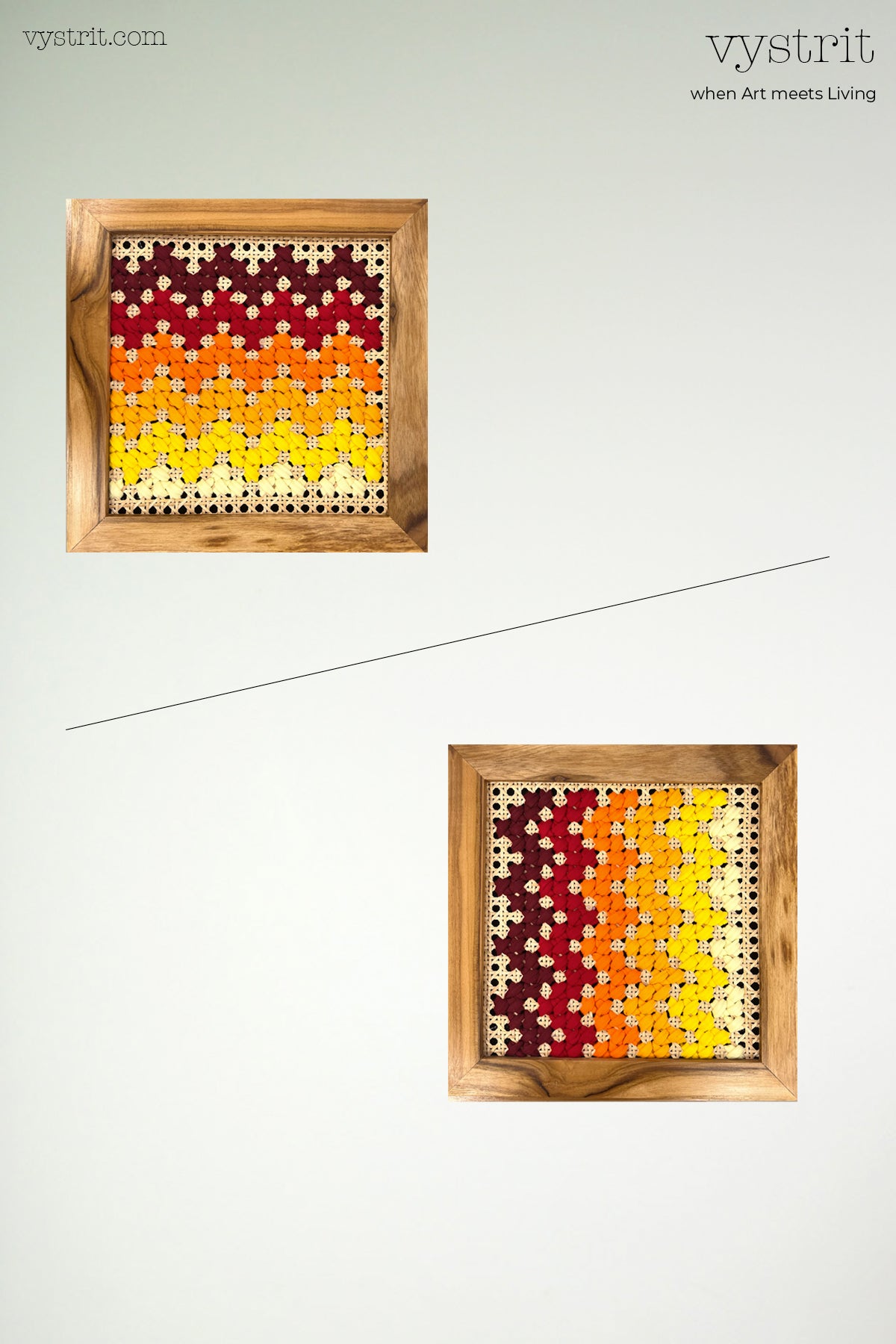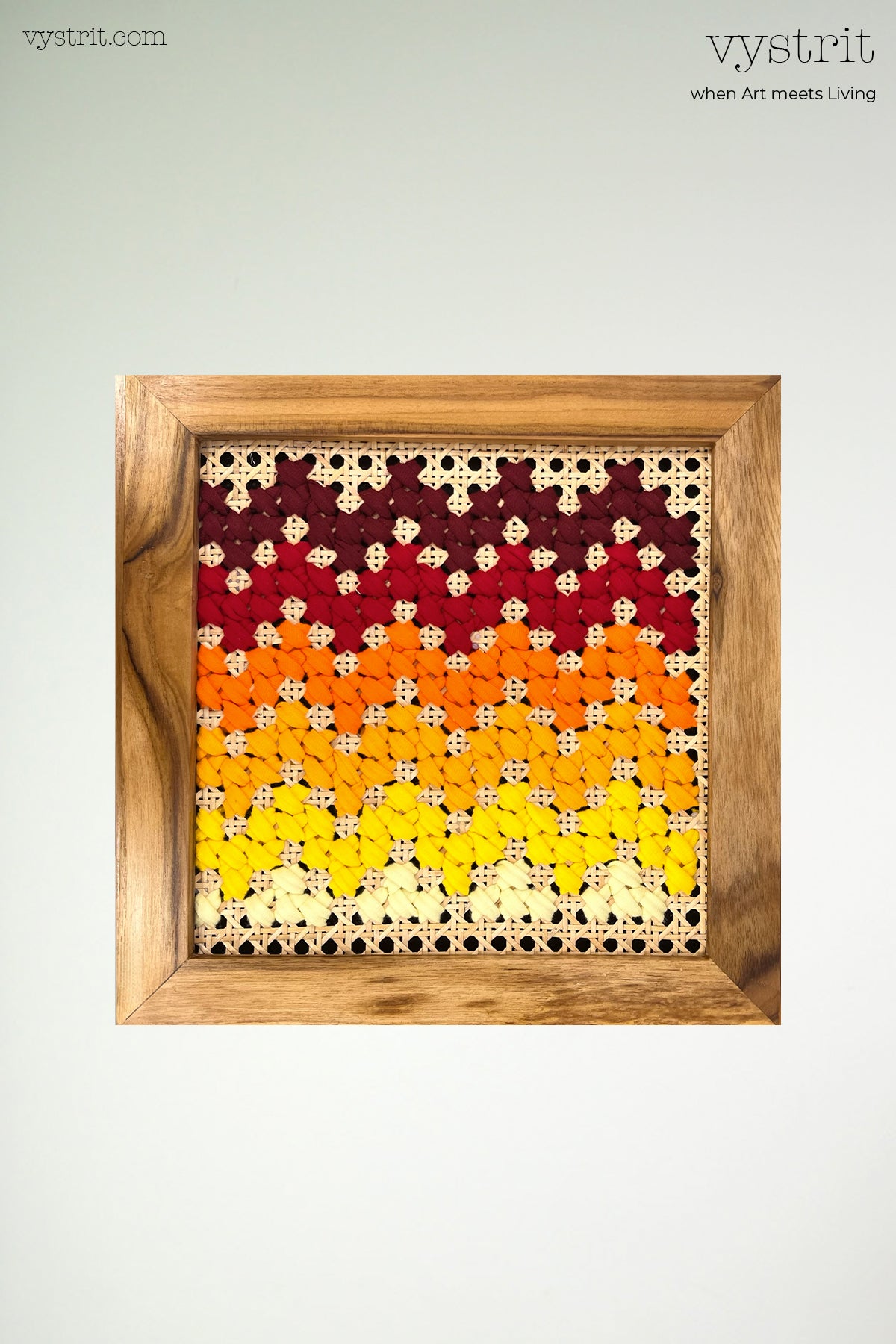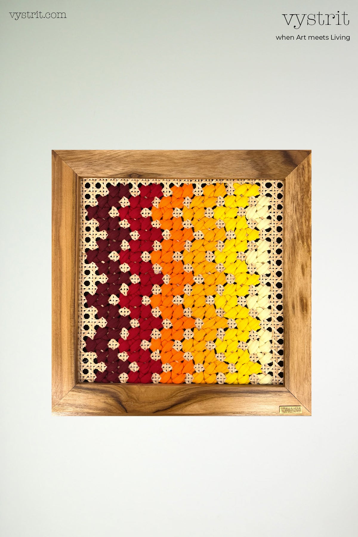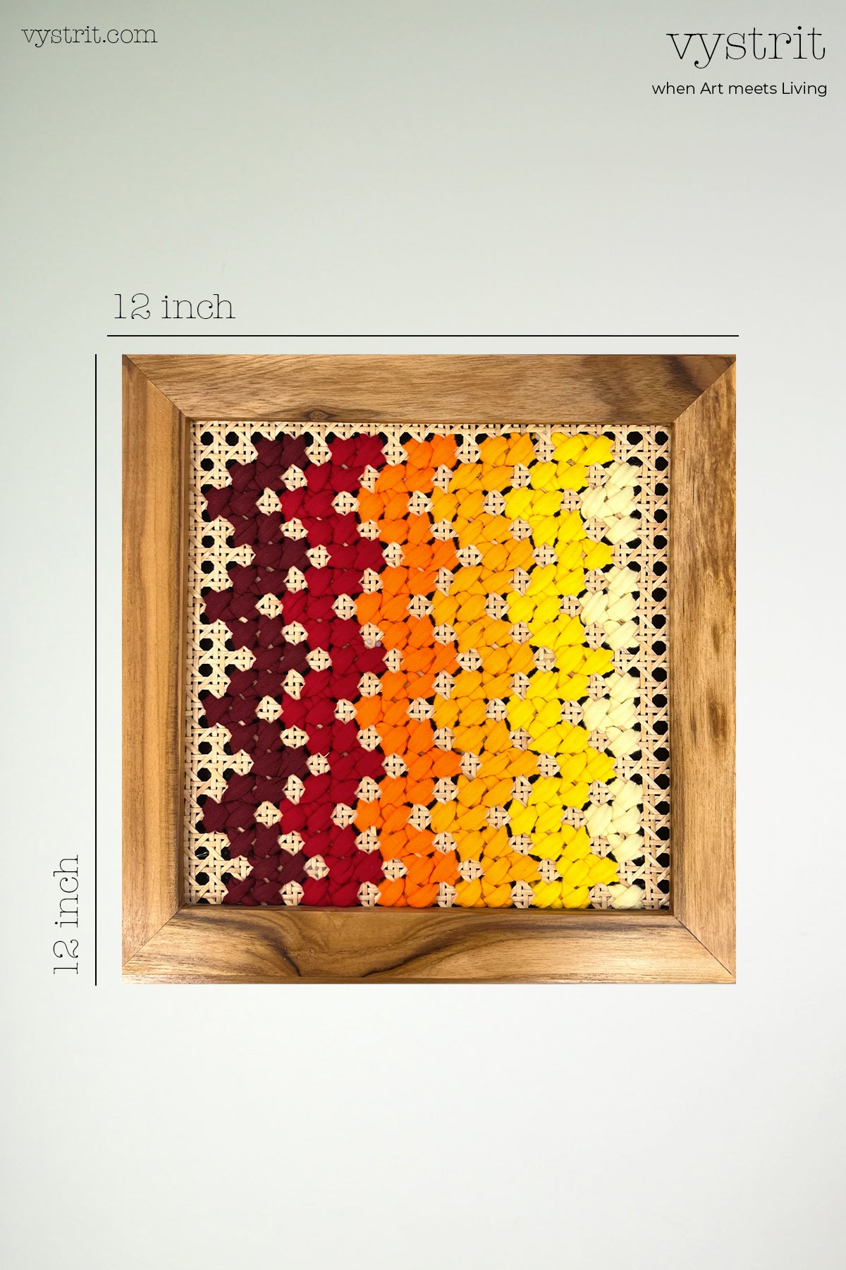 An abstract artwork featuring a gradient that transitions from light yellow to orange, red, and dark red. This piece captures the warmth and drama of a sunset, bringing a vibrant and dynamic energy to your room. Bask in the glow of a fiery sunset, in the comfort of your home.