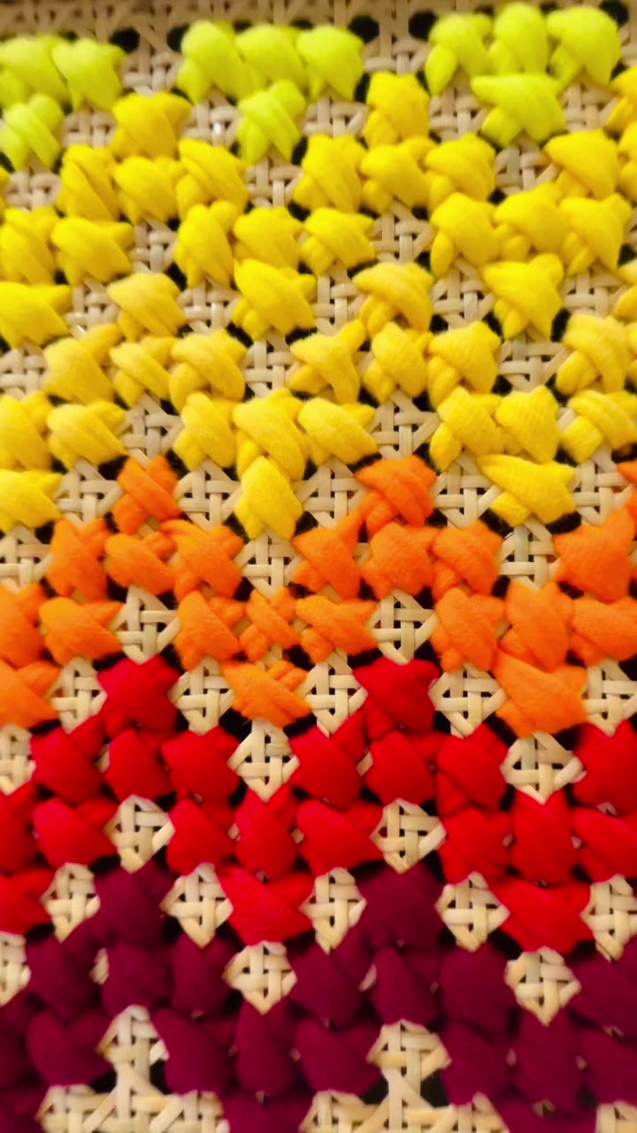 - Material: Handmade Teak wood frame, natural star pattern rattan mesh (cane webbing), textile/ threads