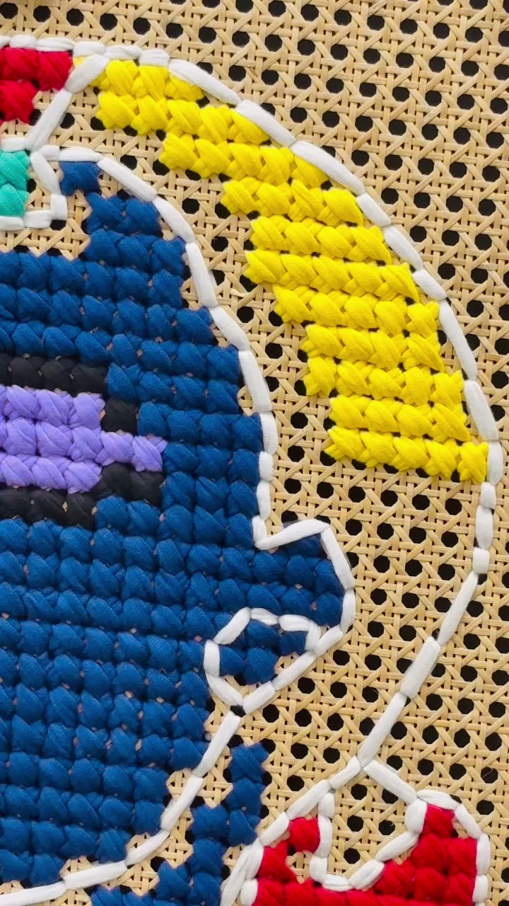 - Material: Handmade teak wood frame, natural star pattern rattan mesh (cane webbing), Cotton Fabric