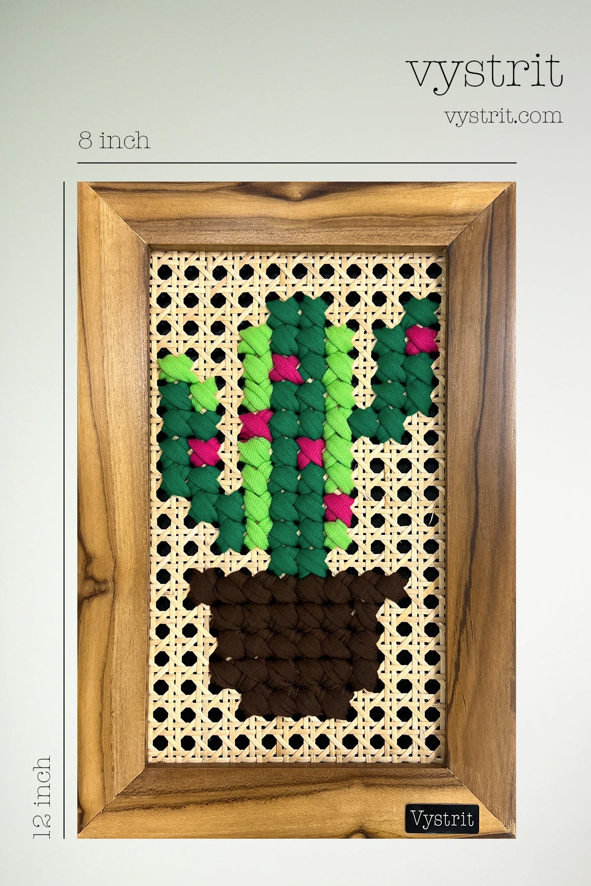 A charming artwork featuring a cactus adorned with delicate pink flowers. The vibrant blooms add a splash of color to the deep green cactus, creating a delightful contrast that brings a touch of nature indoors. A piece that captures the resilience and beauty of the desert, perfect for adding a cheerful and natural element to any room.