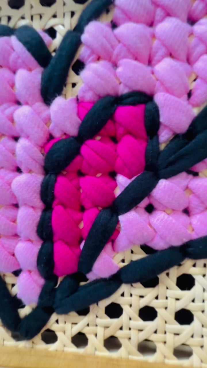 Material: Handmade Teak wood frame, natural star pattern rattan mesh (cane webbing), textile/threads