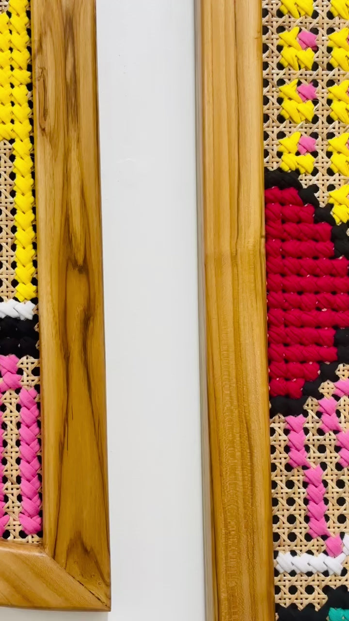 - Material: Handcrafted teak wood frame, natural star pattern rattan mesh (cane webbing)