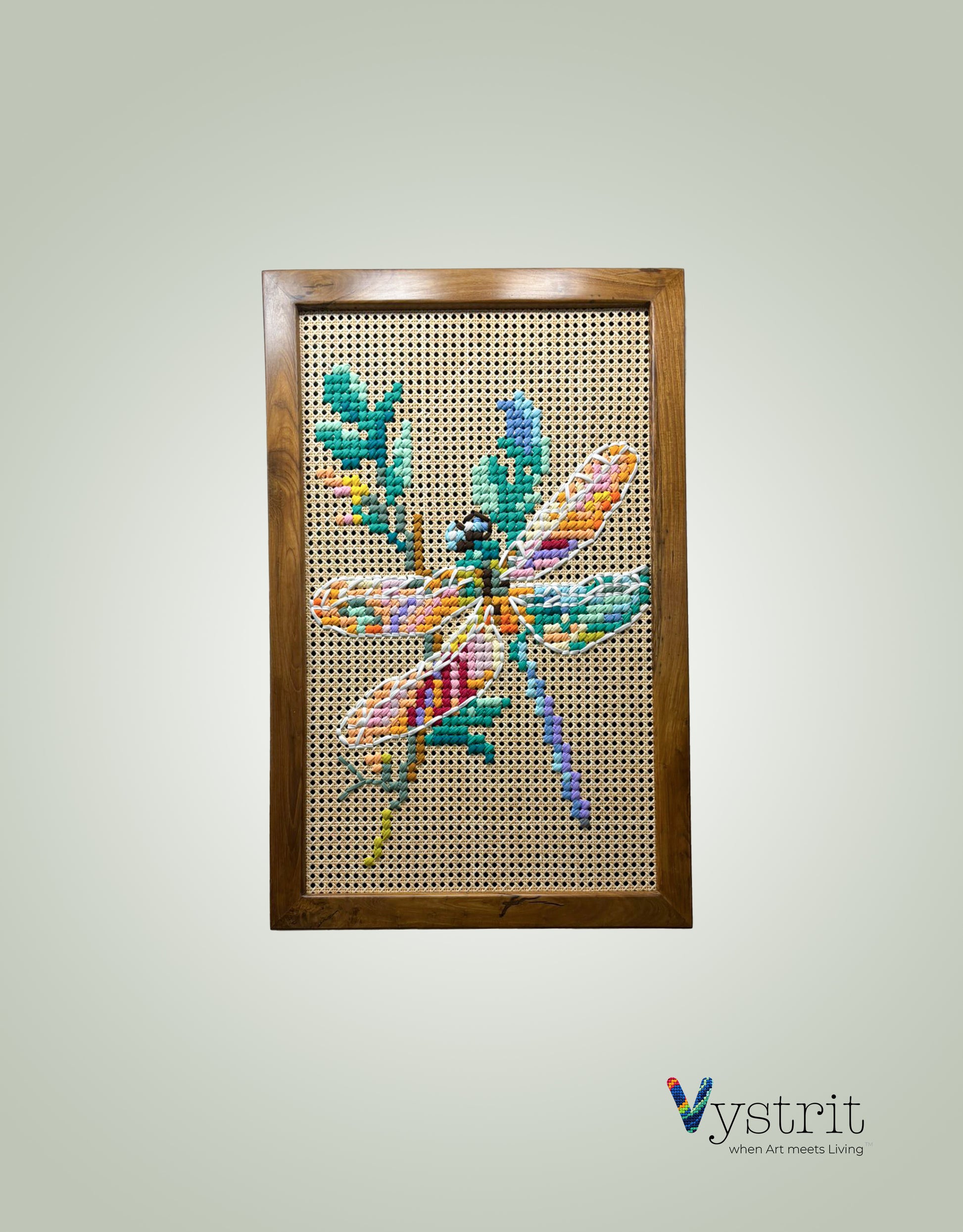 A vibrant portrayal of a dragonfly perched delicately on a branch of lush green leaves, this artwork radiates positivity and charm. The dynamic colors and intricate details beautifully capture the dragonfly’s grace and the natural beauty of its surroundings. This piece evokes a sense of serenity and joy, making it a captivating addition to any space, filling it with uplifting energy and a touch of nature's wonder.