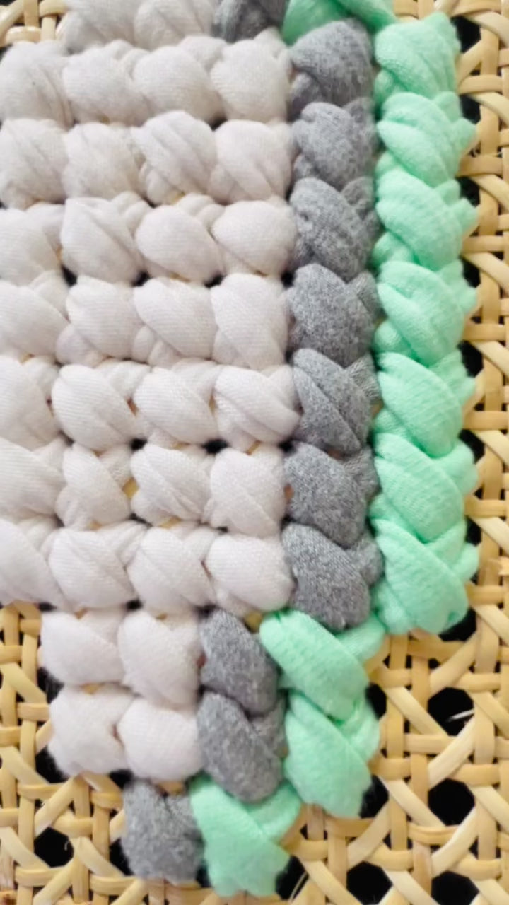 - Art: mixed textile art hand stitched on cane webbing