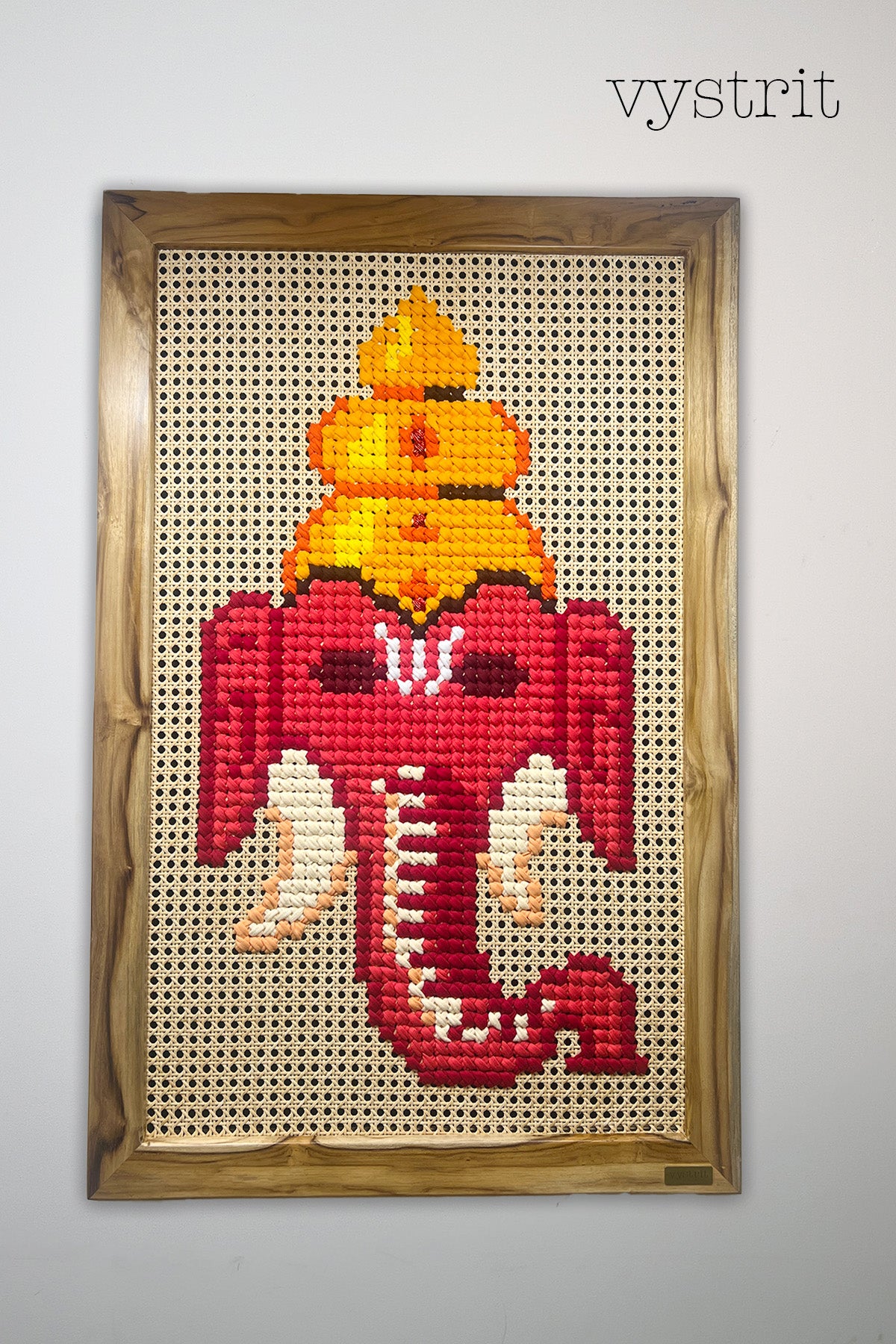 - Art: mixed textile art hand stitched on hand-coloured cane webbing