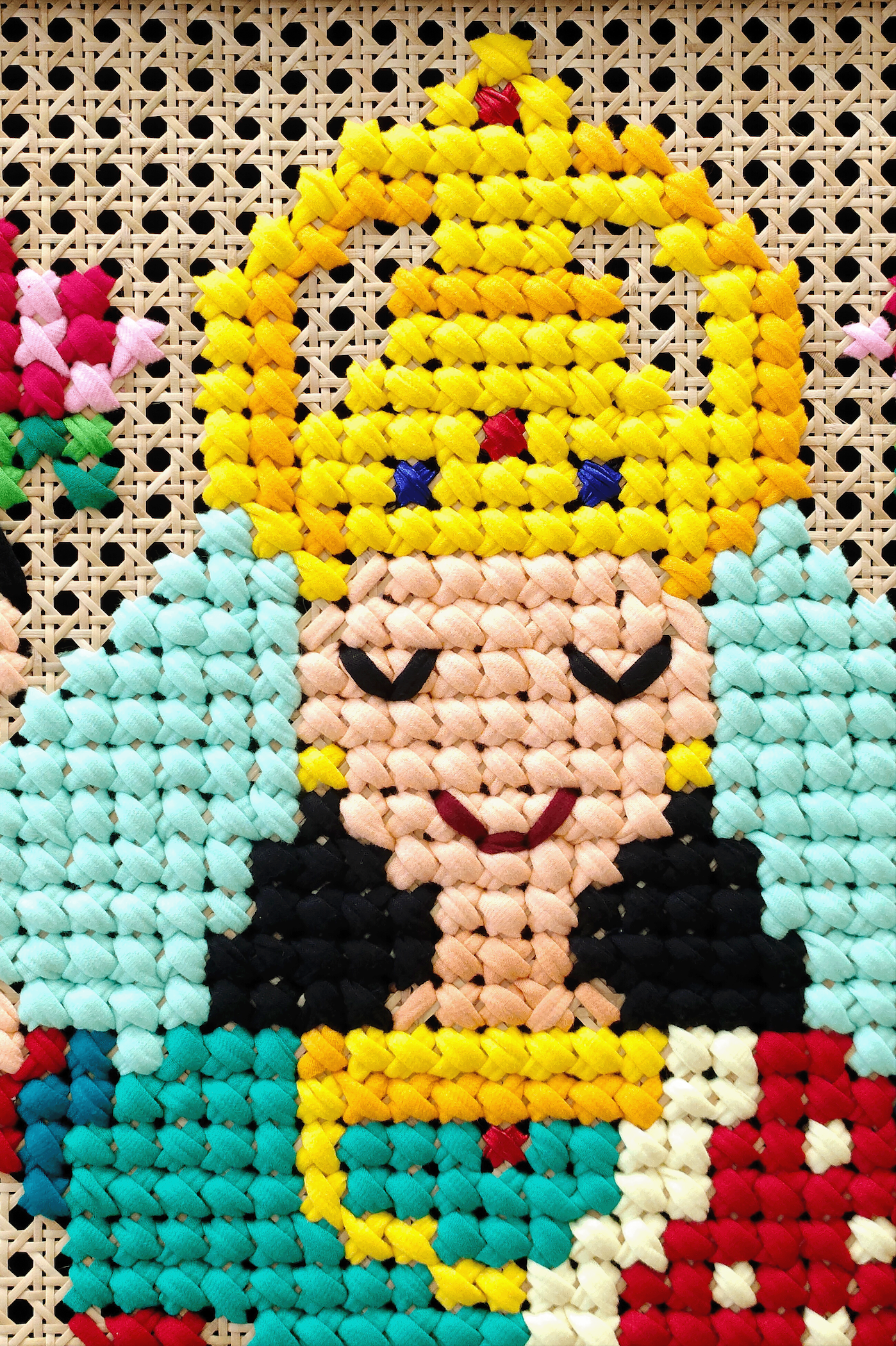 - Art: mixed textile art hand stitched on cane webbing