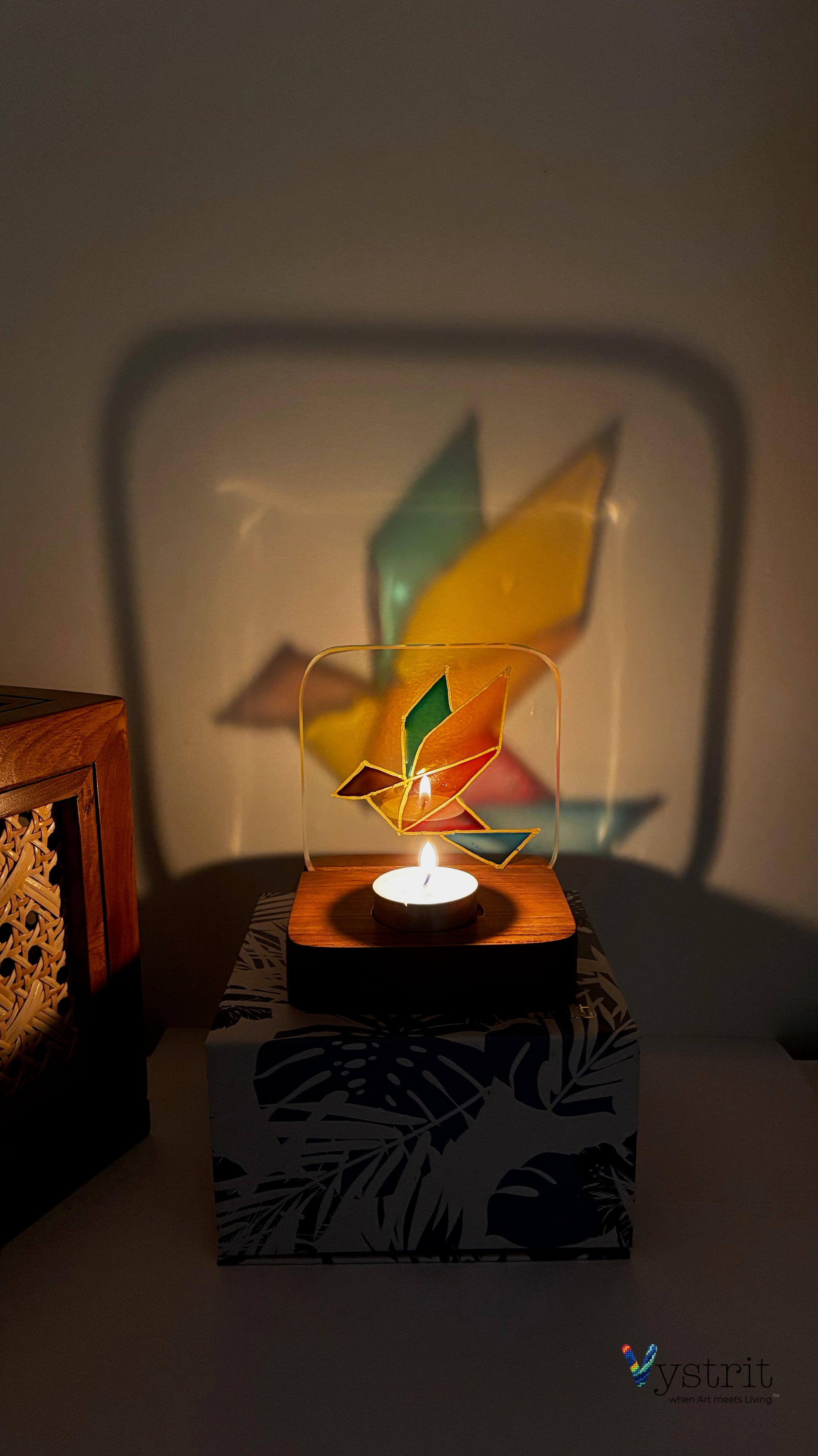 Effect: When lit, the vibrant glass casts colorful reflections, creating a mesmerizing ambiance.