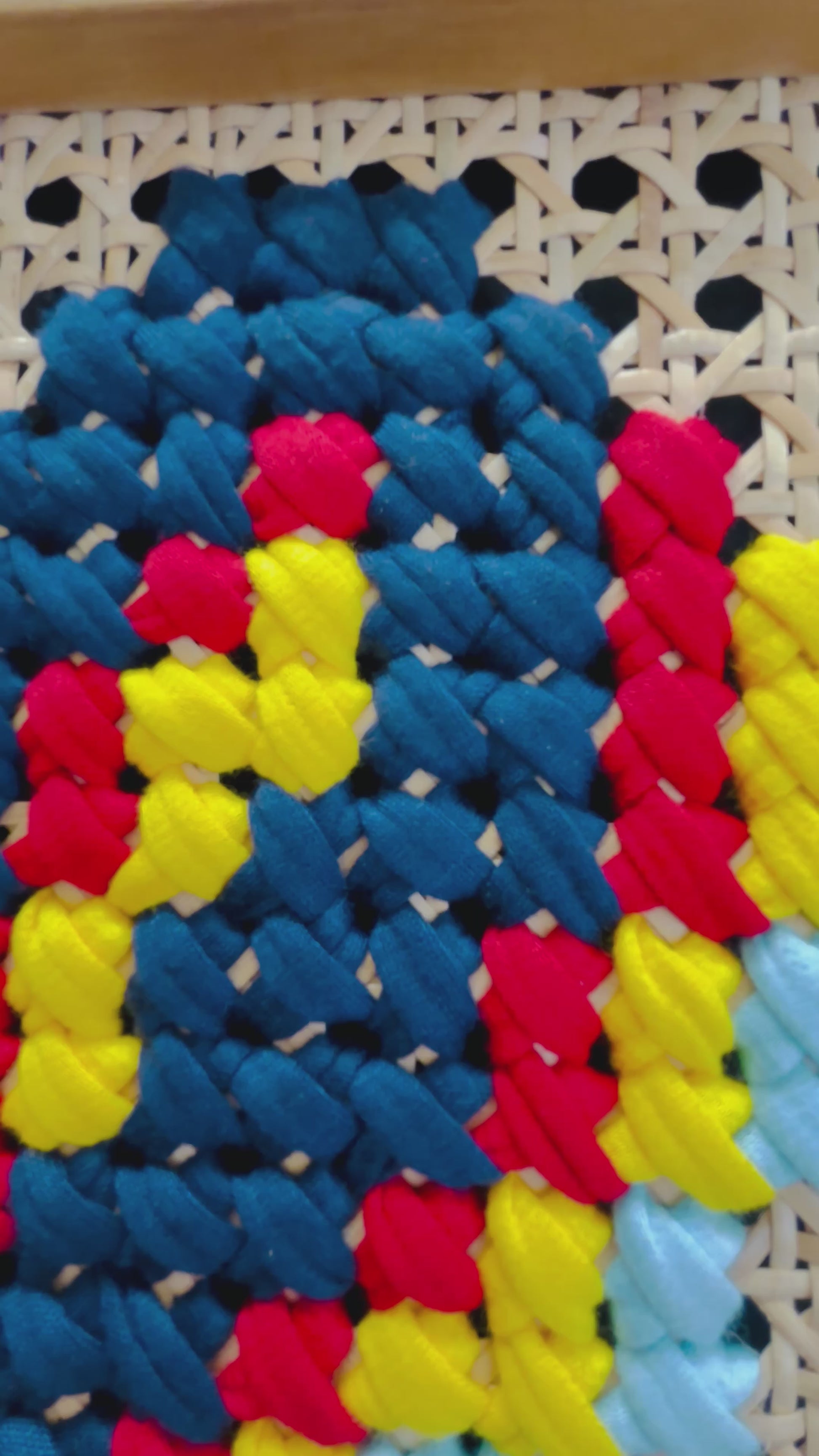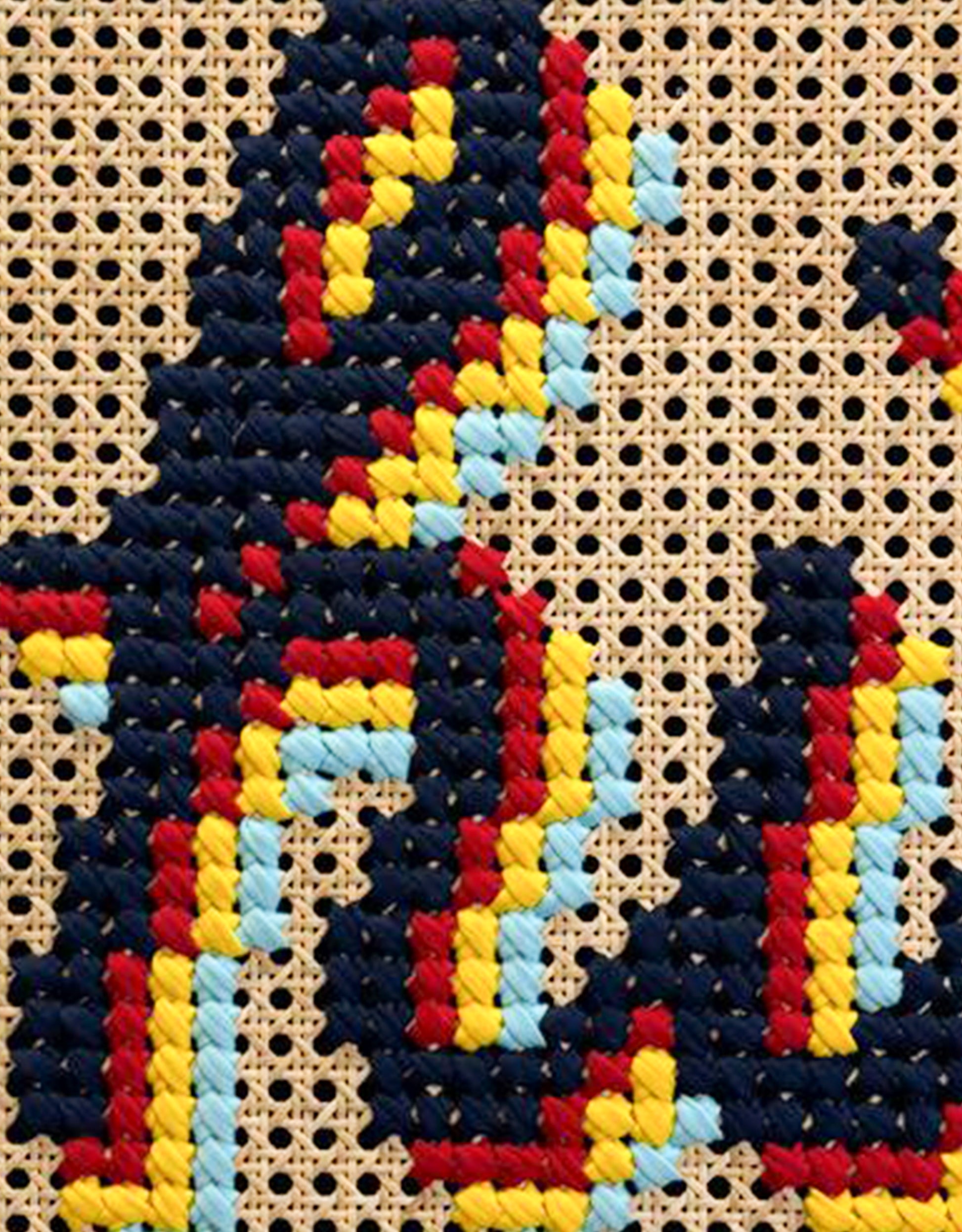 - Art: mixed textile art hand stitched on cane webbing