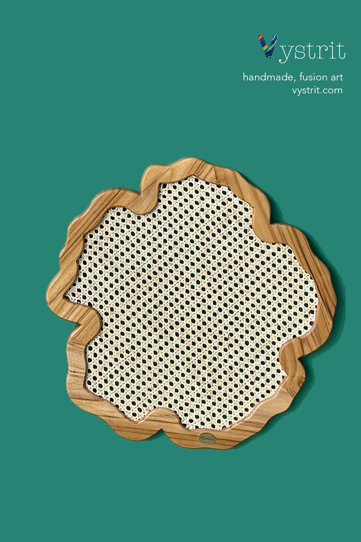 Custom Shape - wood and cane art. Custom Teakwood Frame with natural cane