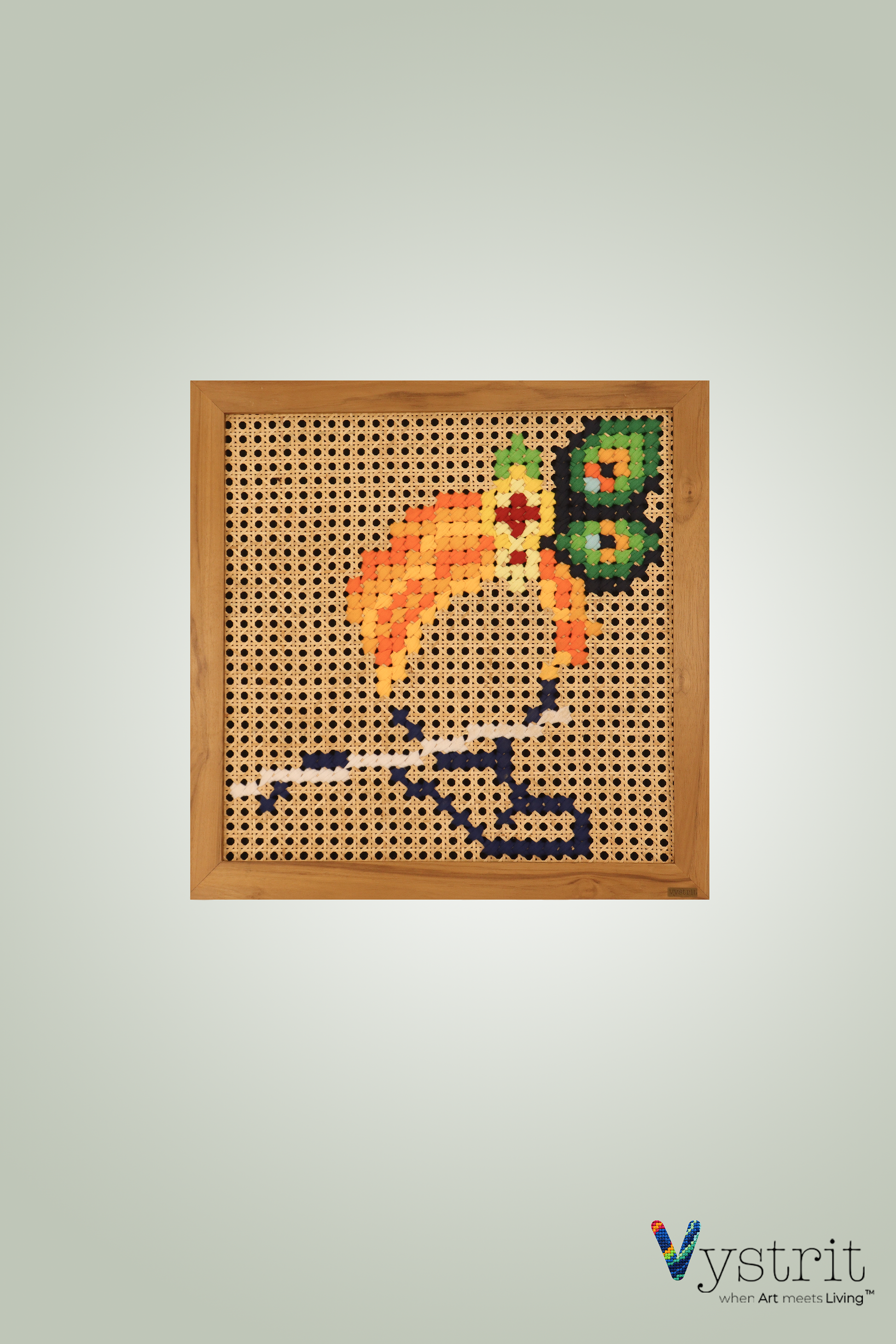 - Art: mixed textile art hand stitched on cane webbing