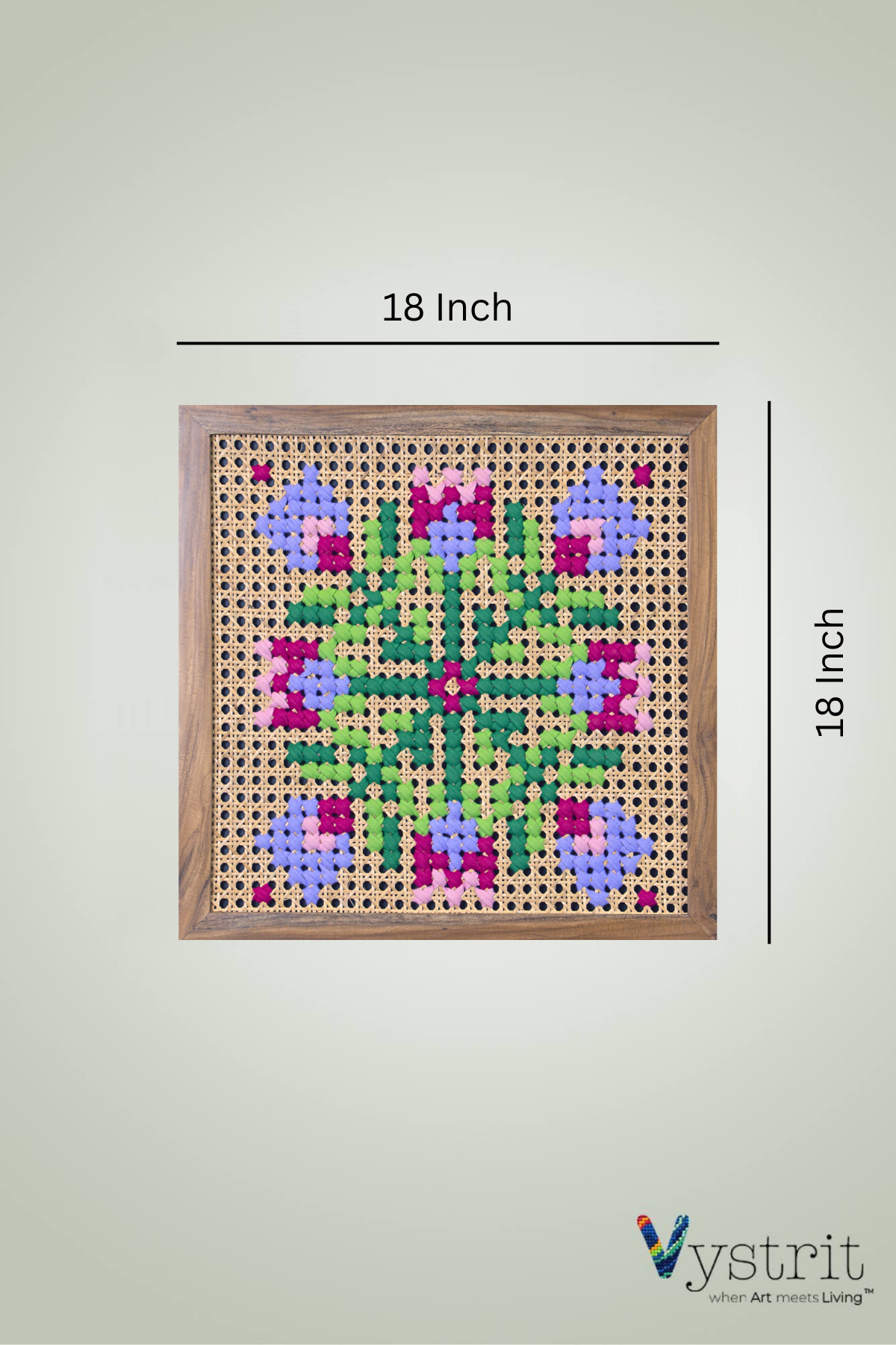 Playful and mesmerizing, a mandala that spins together tradition with a touch of modern charm. A lively center of Purple, Green and Pink bursts into petals and pointed arches, echoing kaleidoscopic joy. The outer patterns are accentuated with shades of plum, mint green, and blush pink, all balanced against soft ivory and taupe tones that calm the composition. It’s the kind of art that invites a smile—ideal for creative corners, reading nooks, or anywhere you want a spark of imaginative beauty.