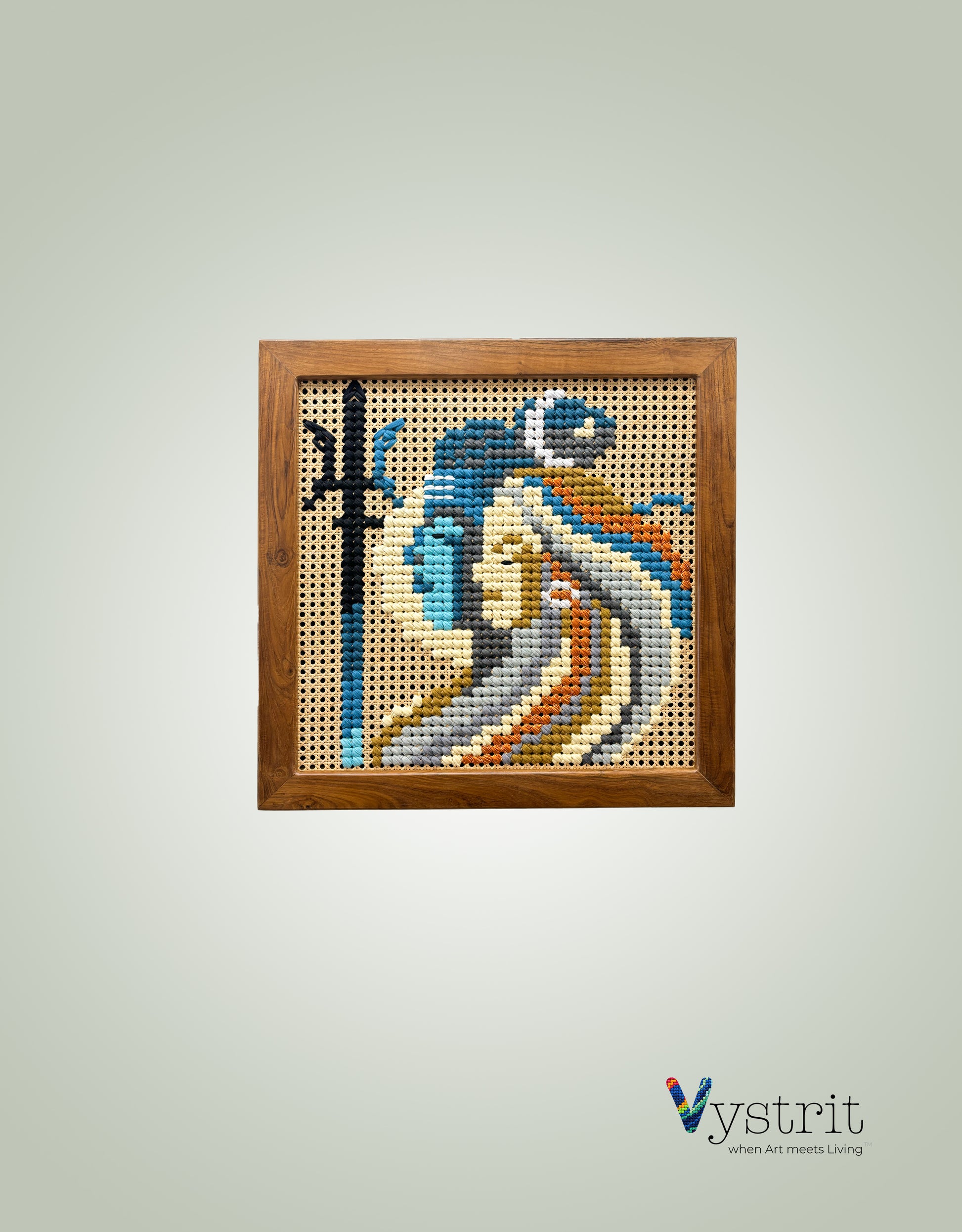 A divine and serene depiction of Shiv and Parvati this artwork embodies the balance of cosmic energies. Lord Shiva, in a calming light blue hue, and Goddess Shakti, in an elegant beige-cream shade, symbolize the union of stillness and power. The Trishul, blending deep black and blue tones, stands as a mark of strength and protection, adding depth to the composition. Parvati’s flowing, beautifully detailed hair enhances the ethereal charm of this piece, while the faceless portrayal invites a sense of universality and devotion.