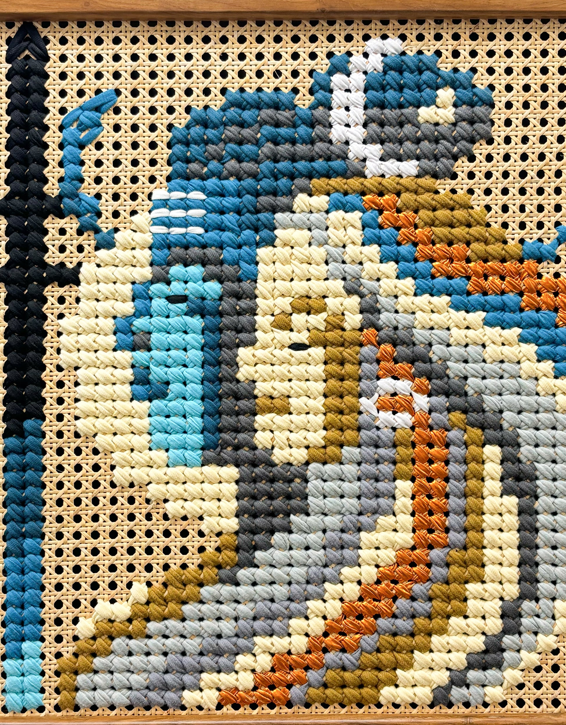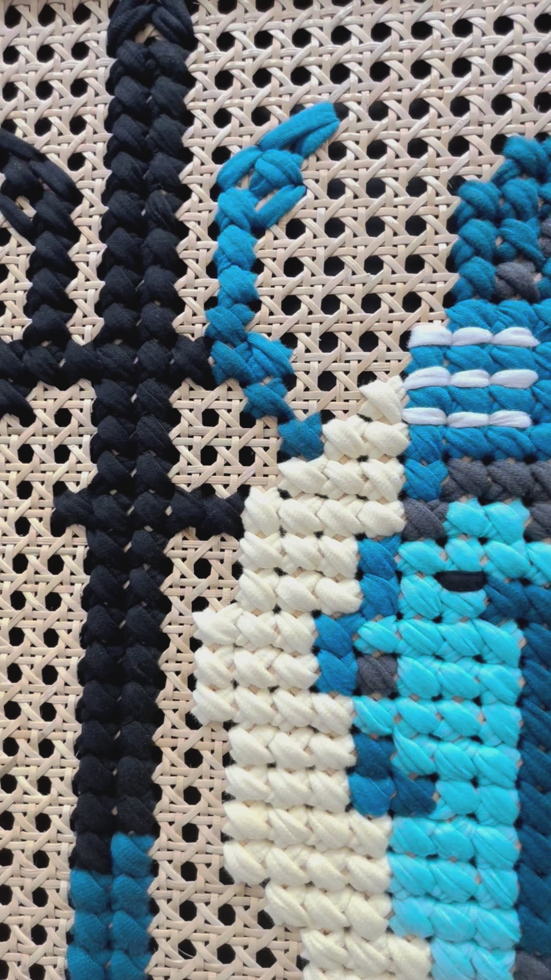 Material: Handmade Teak wood frame, natural star pattern rattan mesh (cane webbing), textile/threads