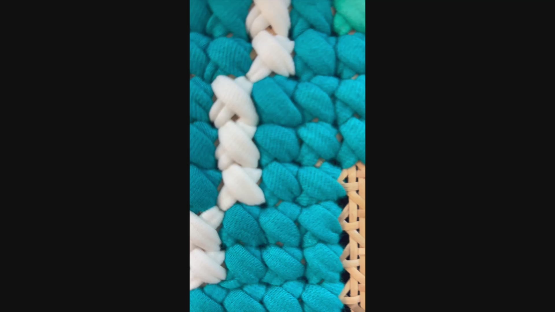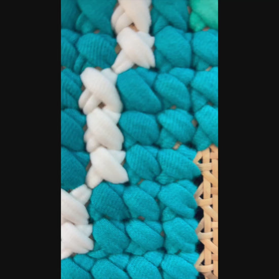 Art Style: Hand-stitched textile leaf motifs on cane webbing