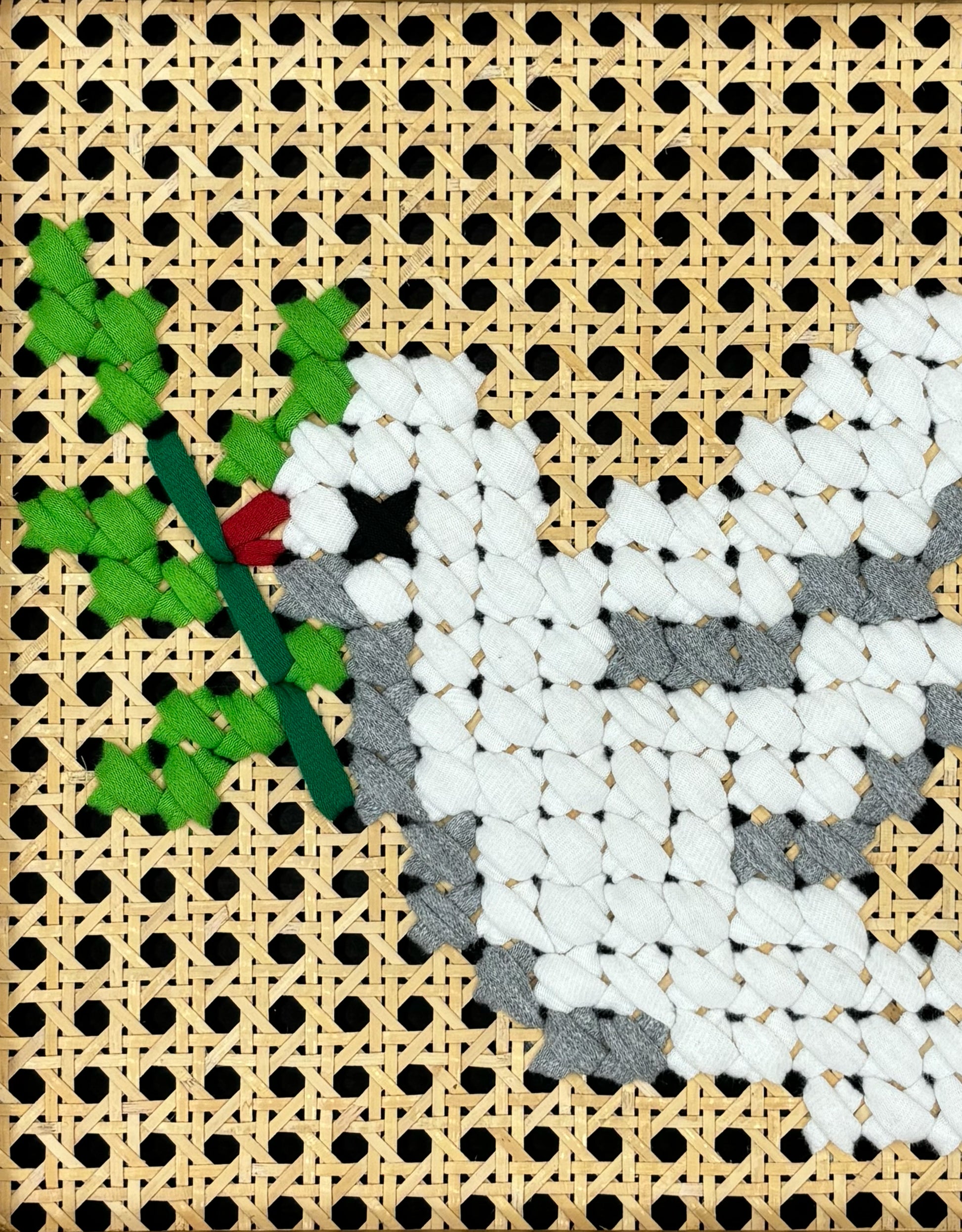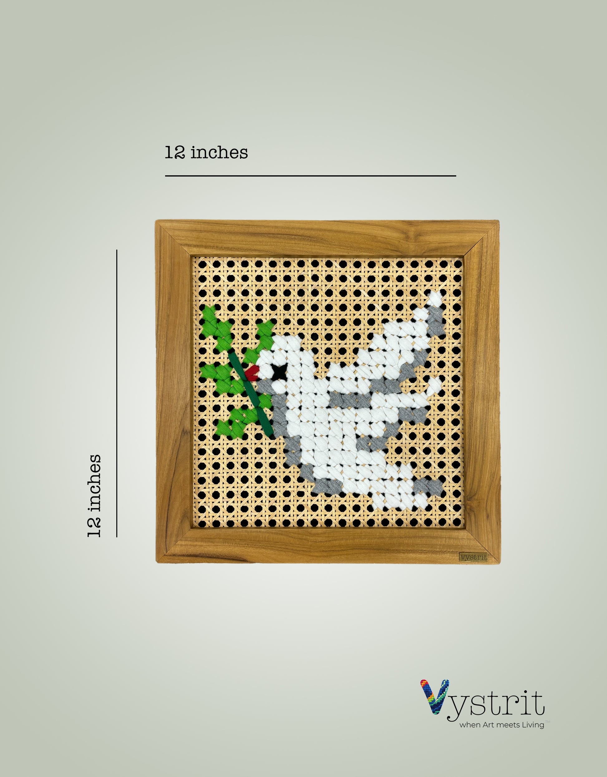 A serene depiction of a white dove, gracefully symbolizing peace. The dove carries a leaf in her mouth, representing harmony, renewal, and hope.