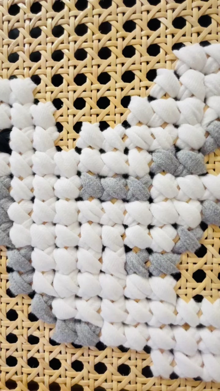 Material: Handmade Teak wood frame, natural star pattern rattan mesh (cane webbing), textile/threads