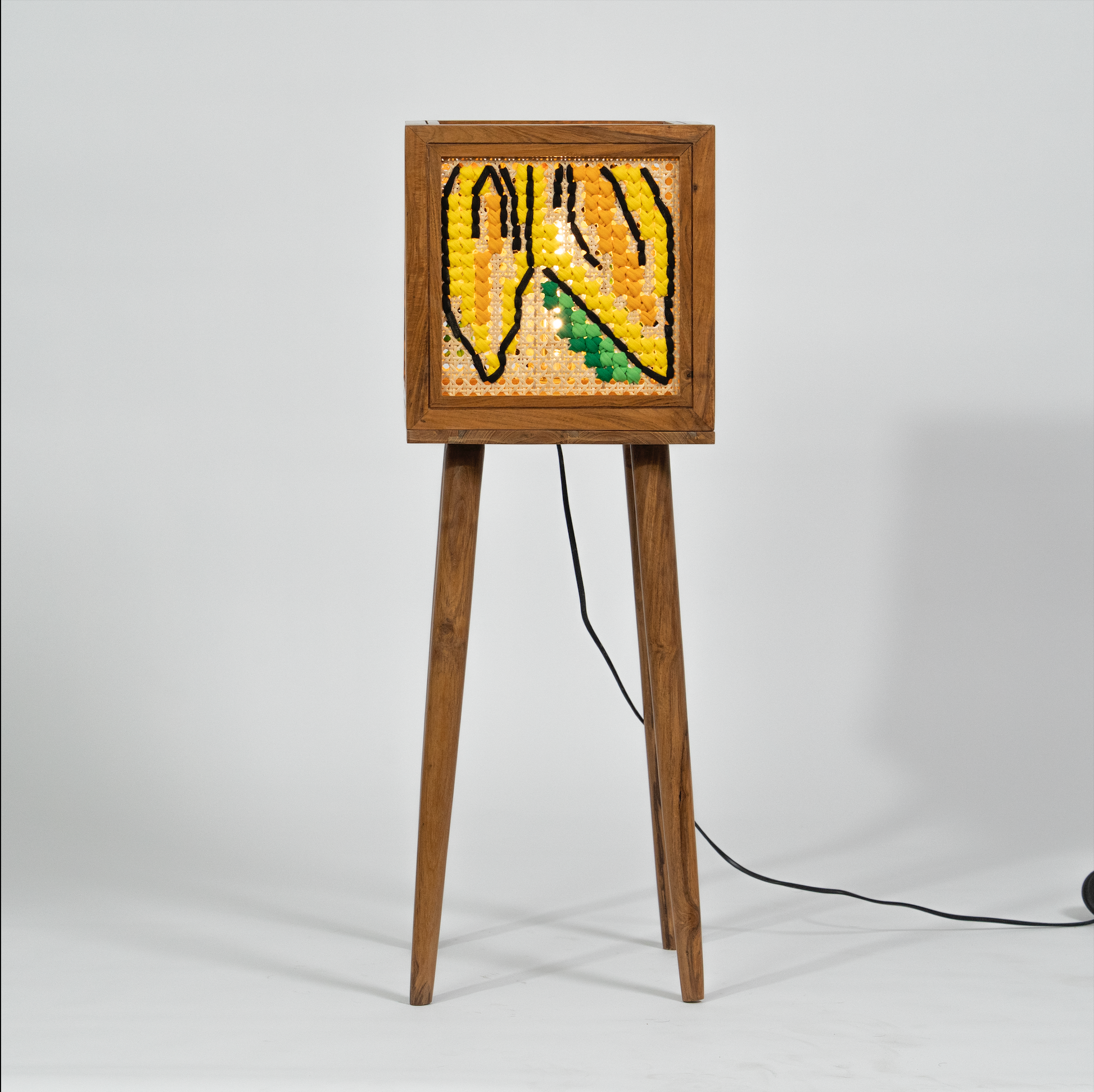When lit by its signature tubular bulb, it casts a mesmerizing glow, creating an inviting ambiance. A true fusion of craftsmanship and design, this lamp is both functional and decorative.