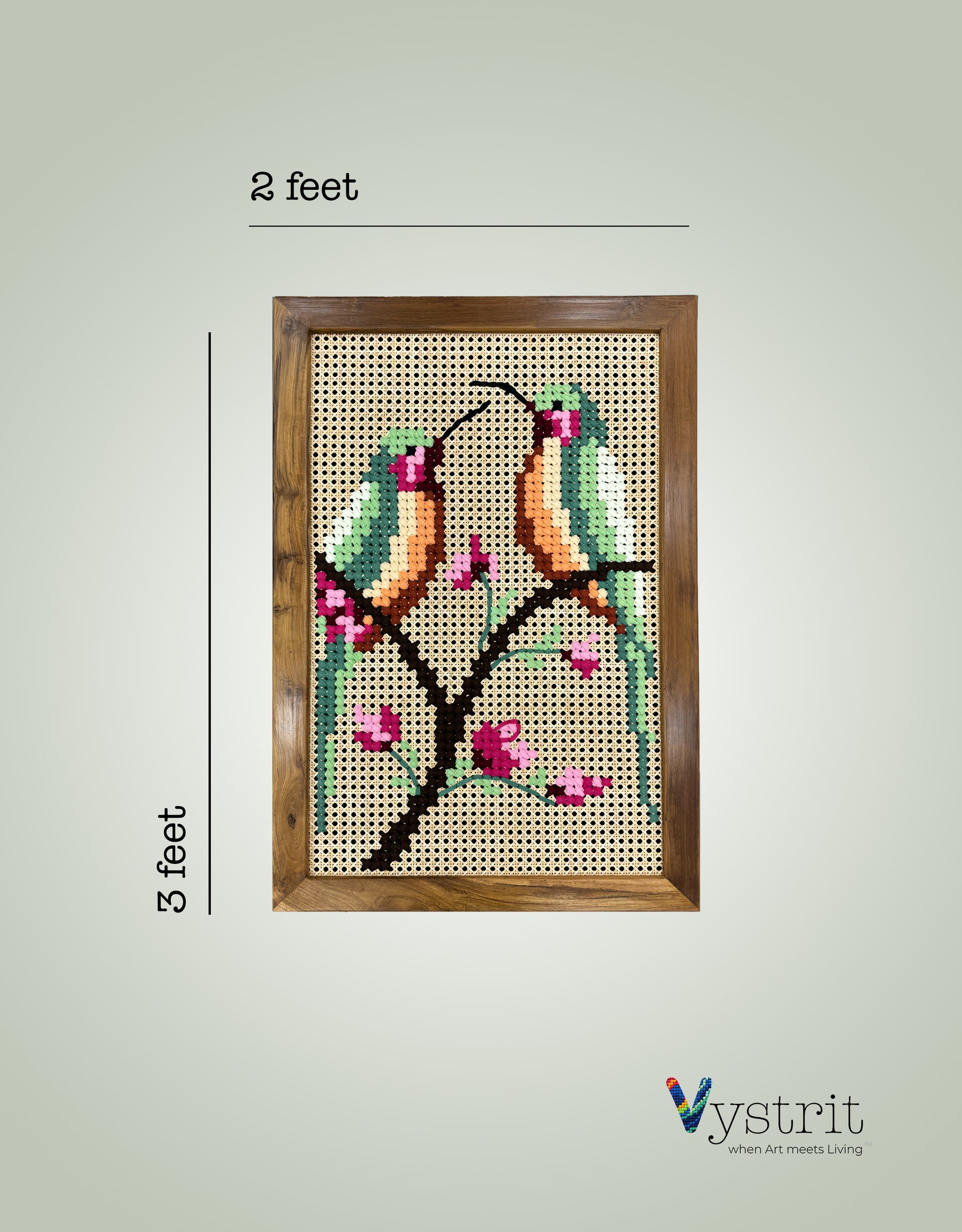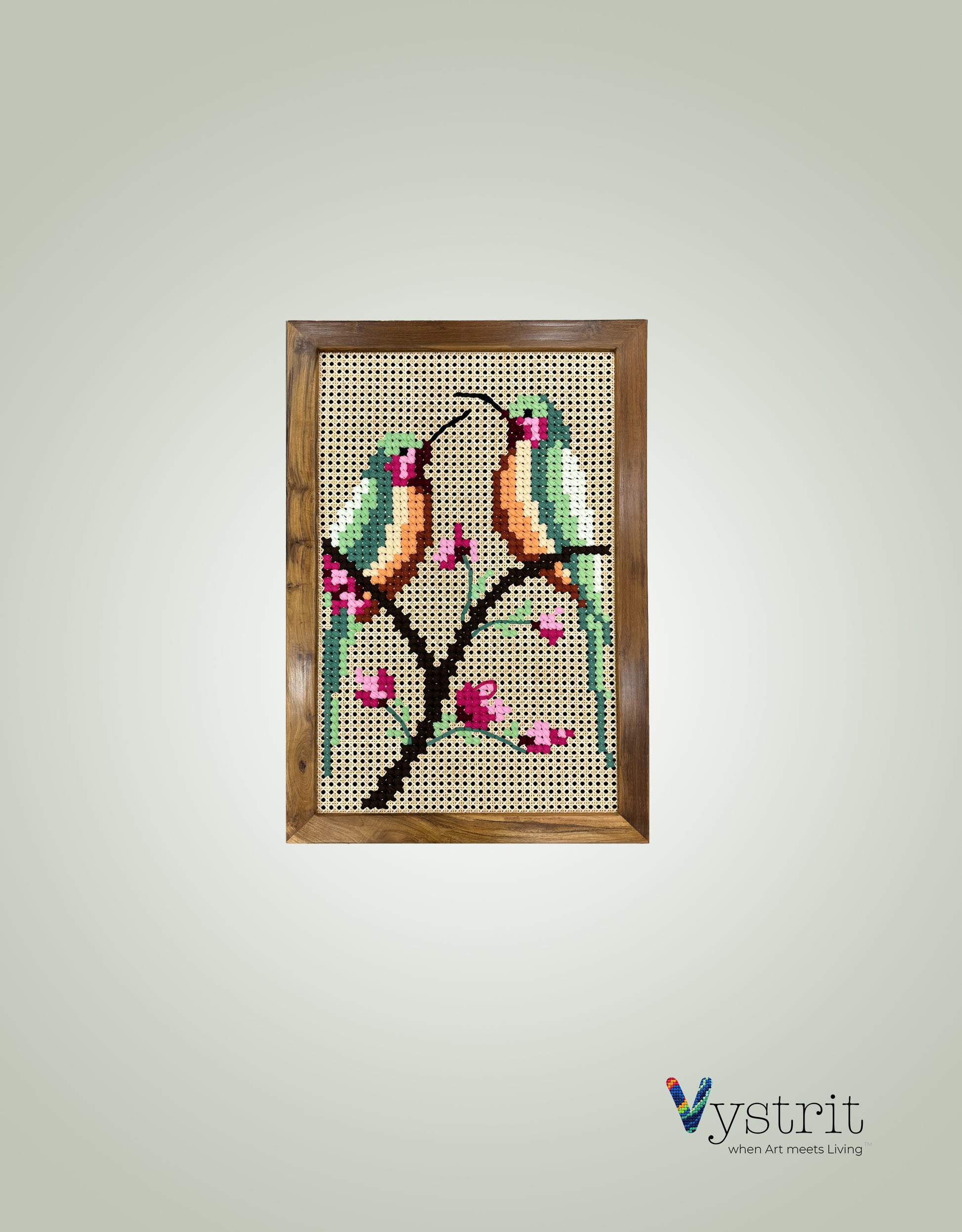 "A peaceful scene of two birds gently perched on a branch, surrounded by delicate pin flowers in full bloom. The tranquil setting symbolizes harmony, connection, and the beauty of nature’s simplest moments."